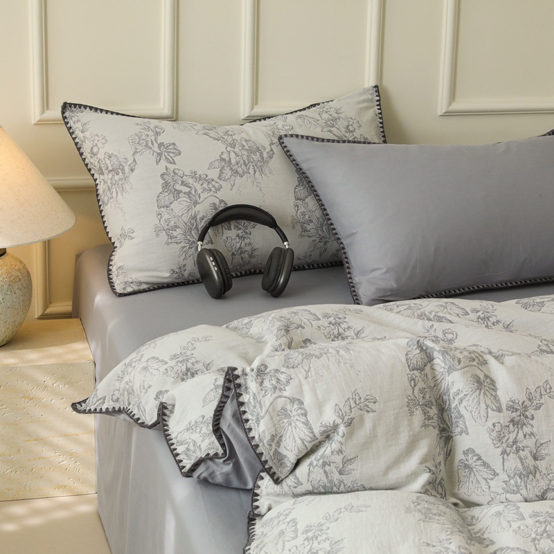 【完売】クラスaオールコットン3層糸ベッド4ピースセットシェルエッジキルトカバーベッドシンプルでハイエンドのベッドルームベッドディングシート